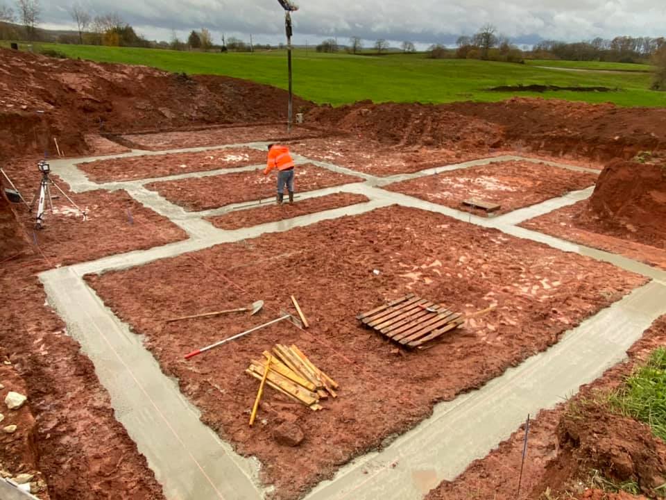 La première étape physique de la construction consiste à préparer le terrain pour la fondation. Cela implique de niveler le sol, d’installer les systèmes de drainage appropriés et de marquer l’emplacement exact de la maison.